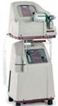 The nasal cannula (NC) is a device used to deliver supplemental oxygen or airflow to a patient or person in need of respiratory help. This device consists of a plastic tube which fits behind the ears, and a set of two prongs which are placed in the nostrils. Oxygen flows from these prongs. The nasal cannula is connected to an oxygen tank, a portable oxygen generator, or a wall connection in a hospital via a flowmeter. The nasal cannula carries 1–5 litres of oxygen per minute. There are also infant or neonatal nasal cannulas which carry less than one litre per minute; these also have smaller prongs. The oxygen fraction provided to the patient ranges roughly from 24% to 35%, or the cannula may merely supply humidified air.
